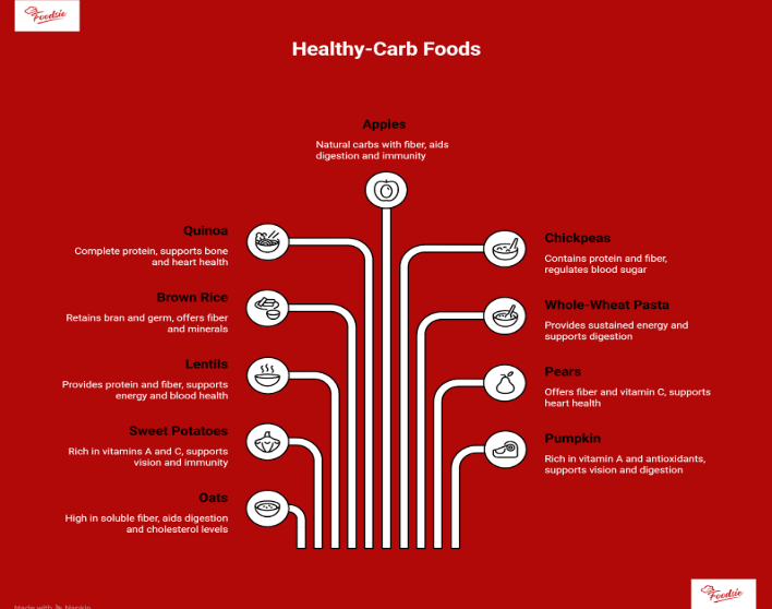 Healthy carbs are foods that are less processed, rich in nutrients, and digest gradually. They help maintain blood sugar levels, provide energy for longer periods, and improve fullness after meals. Unlike refined carbohydrates, which have had their natural nutrients removed and can cause rapid spikes in blood sugar, nutrient-rich carb sources support digestion, brain function, and reduce the risk of long-term health problems like heart disease and type 2 diabetes.