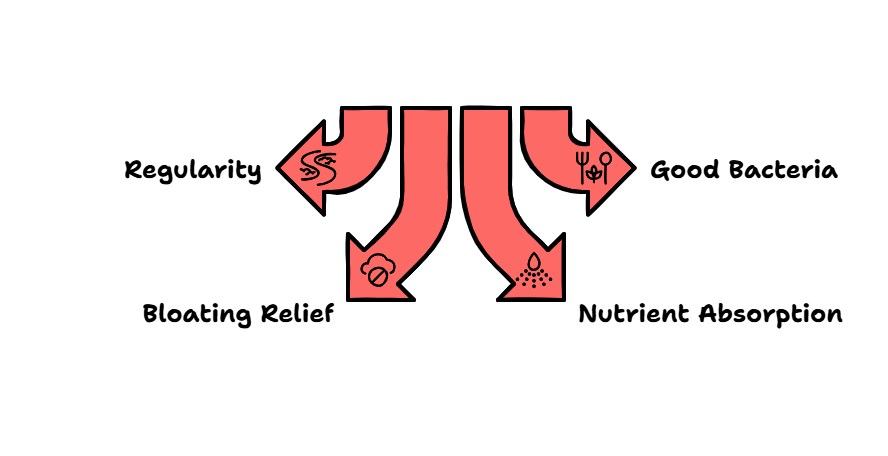 If you often feel uncomfortable or have trouble with regular bowel movements, it could mean you're constipated. This happens when food doesn’t move through your stomach and intestines properly. Fiber helps by making your stool soft and bulky, allowing it to pass easily. This helps you go to the toilet regularly and without discomfort. It also makes you feel lighter and more at ease after eating.