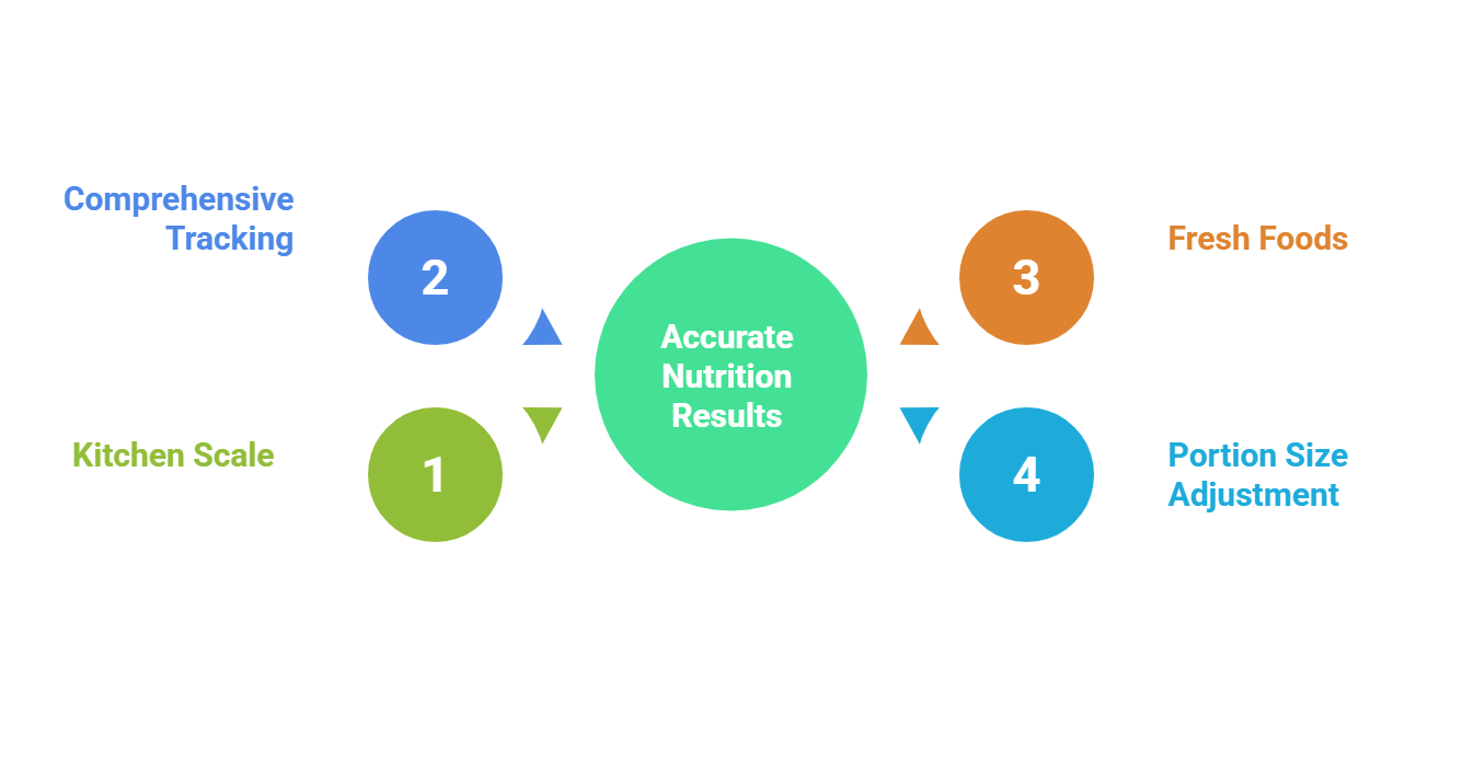 Even if you use good tools to track nutrition, small mistakes like guessing portion sizes or forgetting ingredients, can make your results incorrect. To get the most accurate numbers, follow these simple steps: