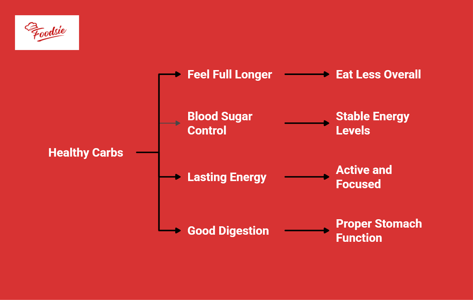 Healthy carbs, also called complex carbohydrates, come from natural foods like whole grains (like brown rice or oats), fruits, vegetables, beans, and seeds. Your body breaks them down slowly, so they give you energy for many hours and stop you from feeling hungry too soon.